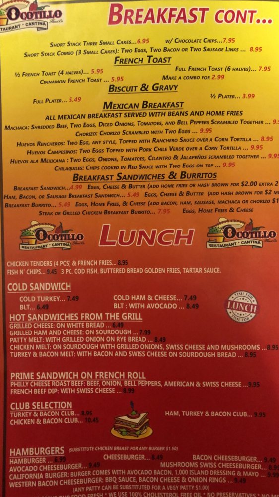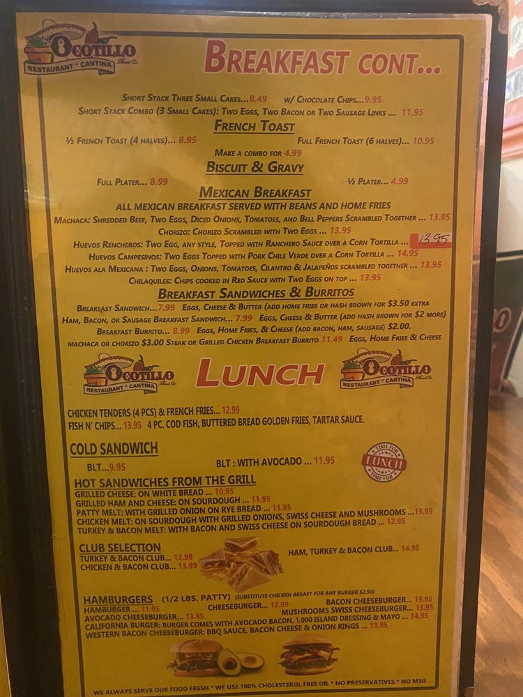 Welcome to Ocotillo Restaurant and Cantina, a delightful blend of American and Mexican cuisines located in Hemet, CA. The restaurant effortlessly combines a casual dining atmosphere with an inviting vibe, perfect for families, groups, or a night out with friends.